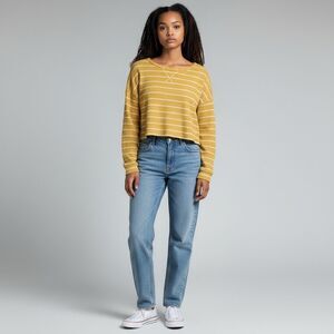 Charlotte Russe Yellow & White Striped Crop Top Long Sleeve Round Neck size L