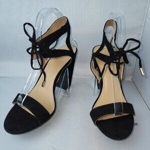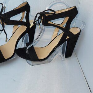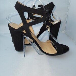 Charlotte Russe, block heels, slingback black, velvet, strappy, lace up, size 11