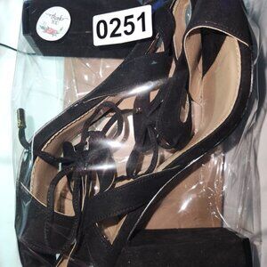 Charlotte Russe, block heels, slingback black, velvet, strappy, lace up, size 11. New. No Visible flaws.Elevate your ensemble with these sleek Charlotte Russe block heels, a perfect blend of style and comfort for any sophisticated event. Wrapped in luscious black faux suede and featuring an elegant strappy design, these heels are crafted to complement your every formal outfit, from wedding attire to cocktail dresses. The lace-up closure ensures a secure fit while the open-toe silhouette adds a touch of allure. With a versatile block heel measuring a sturdy 4 inches and higher, these shoes provide both stability and a chic lift. The adjustable ankle strap and breathable materials offer comfort throughout the evening, whether you're christening a new venue or celebrating a special occasion. These heels are a timeless addition to your wardrobe, ready to make a statement in any season.