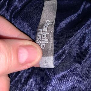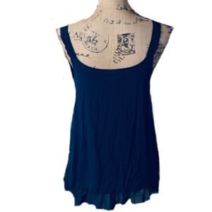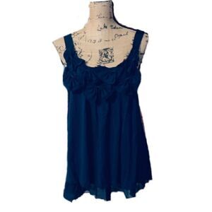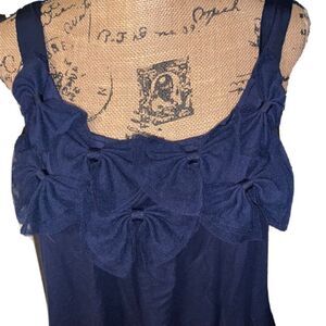 Dark navy blue tank top. Layered with a sheer peek through at the bottom and bows at the neck line. In good condition