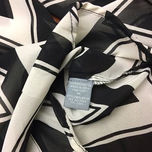 Charlotte Russe ▪️black/white▫️chevron, see through, gold 🔸colored button shirt which has fabric ties @ front of waist. Very cute🆒 🚺Model is 5'4", waist 27"➡️➡️✔️offer button🤗💕➡️➡️Bundle & Save $$$💗