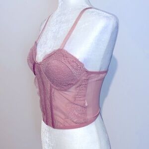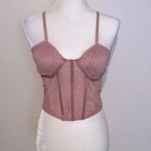 Charlotte Russe corset lace mesh mauvy pink crop tank top