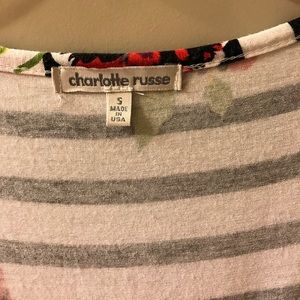 Very comfortable and in very very good condition. Has black and white stripes and red flower pattern on it. Has elastic around the waist which gives it a fitted look.