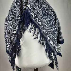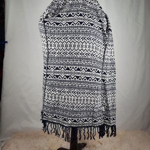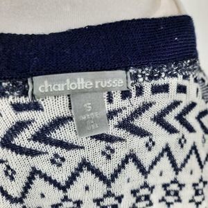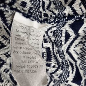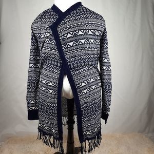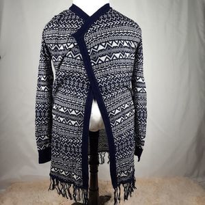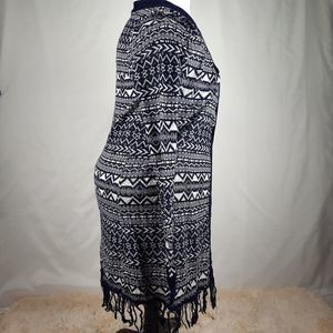 Charlotte Russe edge long sleeve fringe geometric print navy white small acrylic