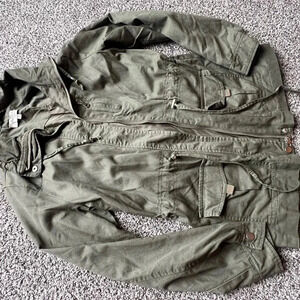 Two waist pockets with flap close and 1 small pocket on left shoulder with zipper close