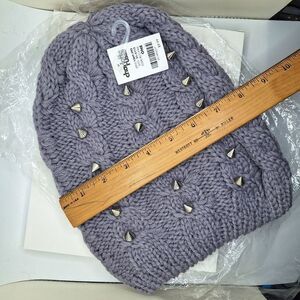 Charlotte Russe soft gray spike studded beanie hat knitted slouchy cap