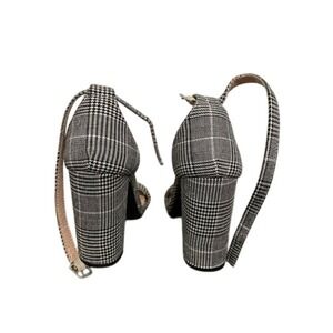 Stylish plaid heeled sandals, perfect for adding a touch of sophistication to any outfit. These heels feature an open-toe design and a secure ankle strap for a comfortable fit. The block heel provides stability and height, making them ideal for both daytime events and evening outings. Pair them with a dress for a party or with jeans for a chic casual look.