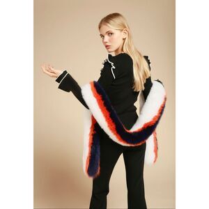 Delivery Duty Paid included – Striped fur scarf in orange, blue and white.