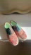 In good condition., Velvet textured upper. Leather insole., Colorful slip-on shoes with floral patterns. Features blue, green, and brown