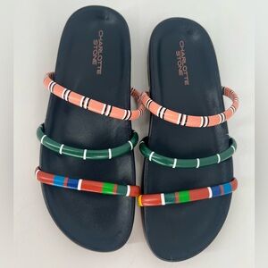 Charlotte Stone Dolly Multi Color Strappy Leather Sandals In Columbia Stripe