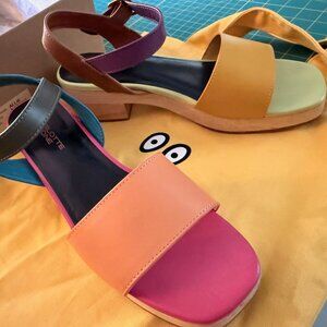 Charlotte Stone Multi-Color Leather Clog Sandals, Size 9