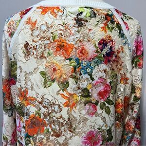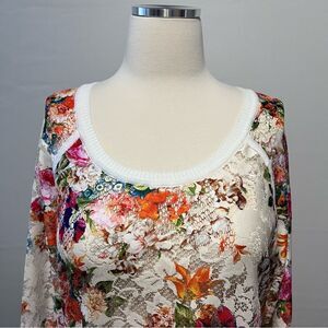 Charlotte Tarantola Floral Scoop Neck Drop Sleeve Sheer Sweater Size Large