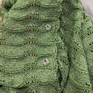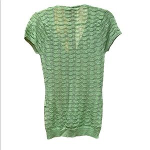 Green short sleeve lightweight sweater cardigan. Belt loops attached- no belt included.