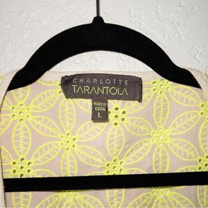Charlotte Tarantola Beige Fly Away Cardigan Neon Cutout Back Size Large