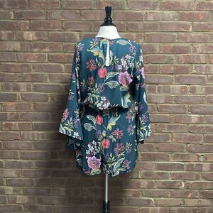 Charlotte Russe Green Floral Bell Sleeve Romper Size Large