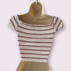 Charlotte Russe Striped White Crop Top Size Extra Small