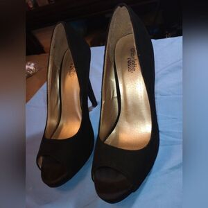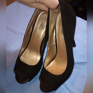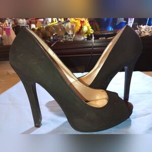 Charlotte Russe black velvet 5 " open toe heels, size 8