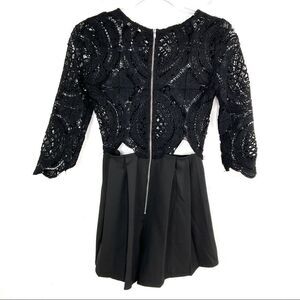 Charlotte Russe Black Crochet 3/4 Sleeve Romper XS