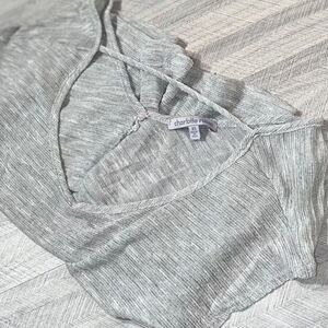 Silver metallic open-back sheer top from Charlotte Russe! In great condition without any notable imperfections (tears, stains, piling… etc)