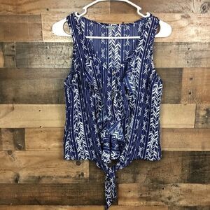 Charlotte Russe Top Crop Blue White Tie Front Waist Sleeveless Small