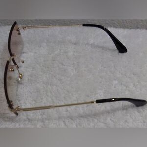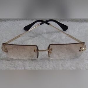 Step up your style game with these chic Charlotte Vibes fashion glasses! Featuring a sleek gold-tone frame and clear lenses, these glasses are perfect for adding a touch of sophistication to any outfit. Please note that one nose support is missing, but otherwise, they are like new. Don’t miss out on this unique accessory that combines style and comfort!”