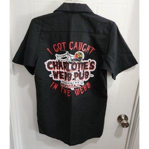 "Charlotte's Webb Pub" Wauchula, FL Black Mechanics Short Sleeve Work Shirt Sz S.
