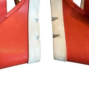 Charly Amar Leather Wedge Sandals Slides Bold Coral Strappy Size 10 Women's