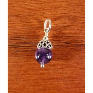 Charm Amethyst Sterling Silver Vintage Ornate Purple Pendant .75 Inch.