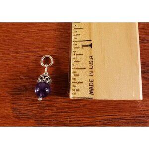 Charm Amethyst Sterling Silver Vintage Ornate Purple Pendant .75 Inch