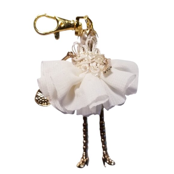 Charm Doll Purse Tassel Key Chain Necklace Pendant White Pearl White Dress gold