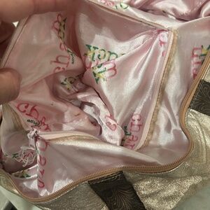 While the bag is pre-owned, it has been professionally dry-cleaned and is in excellent condition. Please note a slight discoloration near the interior zipper pocket, which is a natural result of the adhesive used during manufacturing.