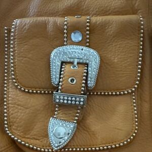 Charm & Luck Studded Tan Leather Shoulder Bag