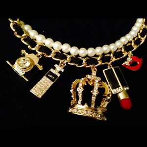 Gorgeous Charm Necklace With Dangling Pearl Earrings. Make a statement with this set.