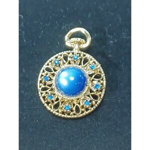 Charm Pin Pendant Big Blue Beautiful Stone Golden Charm Pin Brilliant Round Fun