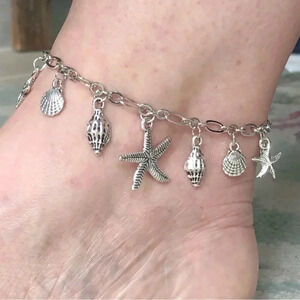 Charm Shell Seashell Starfish Summer Beach Ocean Silver Tone Anklet New NWT