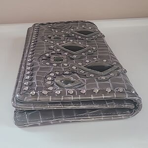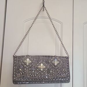 This gorgeous clutch converts into a shoulder bag. It is in very good pre-loved condition. Gray with silver and rhinestone embellishments. 💗 Please see photos for minimal signs of wear.📷 Still has lots of life! From a pet free, smoke free home. Make me an offer or bundle for discounts!