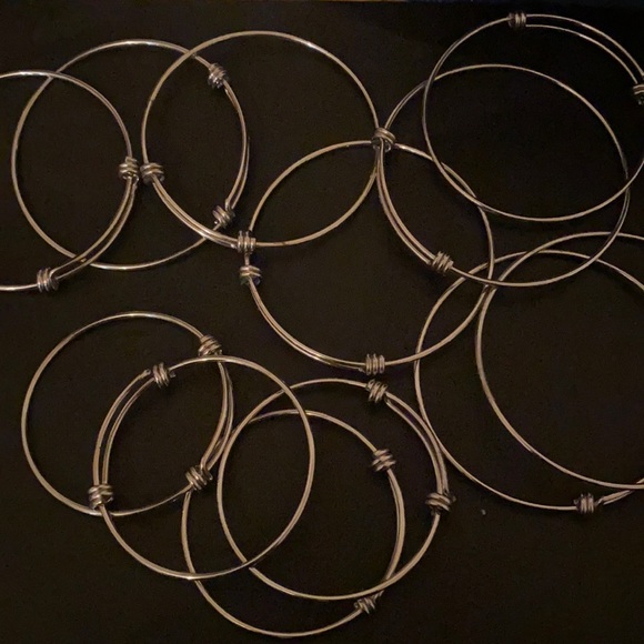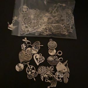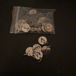 13 silver charm bracelet small & large with assorted charms 26 initial charms, 4 sport charms, and a bag of assorted charms