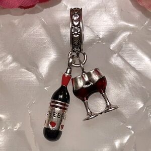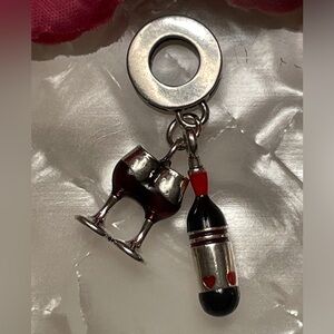This bracelet charm is of a wine bottle that says “cheers” on it and has red hearts on the bottle also. Plus, 2 wine glasses. The perfect charm for a girl who loves wine. The charm is sterling silver, S925. This charm is made to fit Pandora bracelets, but not by Pandora. Can be used with similar bracelets.