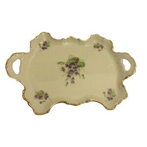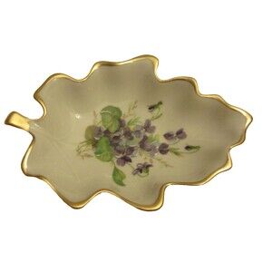 Charmart Limoges France Tray & Leaf Dish Porcelain Floral Flowers Hand Painted V