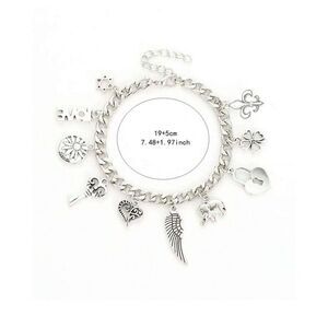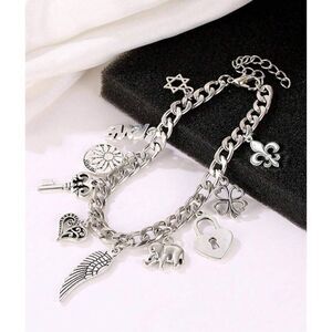 Adorable love and luck silver tone charm bracelet filled with heart charms, angel wings, love and lucky charms. Super cute addition to any collection. Measurements in photos