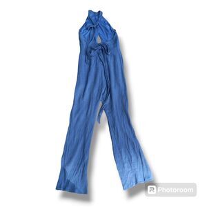 Charme U Halter Style Chiffon Jumpsuit-Small-Lined-Keyhole Cut Out-Shiny Reflect