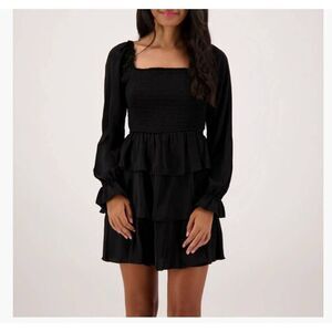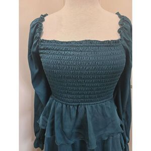 Charmed Hearts Dark Forest Green 3 Tiered Ruffle Mini Dress, Long Sleeves, Smock