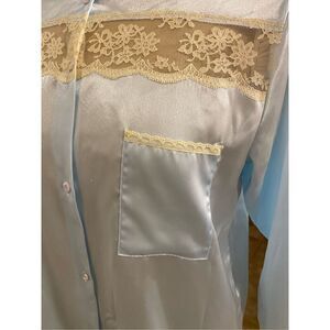 Charmeuse Satin & Lace Nightgown Baby Blue Sz.L Button Front