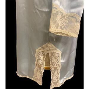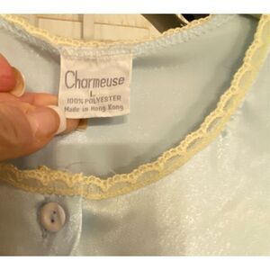 Beautiful satin and lace baby blue nightgown by Charmeuse. Long sleeves with lace accents. Buttons up the front. Never worn.
