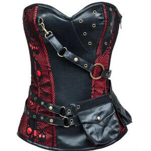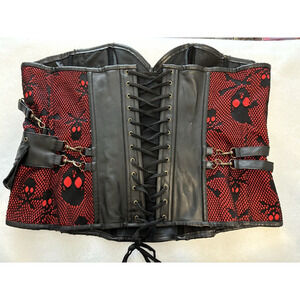 Charmian Skull Bones Red Black Corset Gothic Steampunk Hallween Costume 5XL