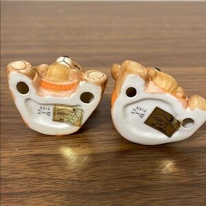 Adorable bear figurines featuring intricate headdresses. Perfect for collectors or decor. Features orange and tan colors.