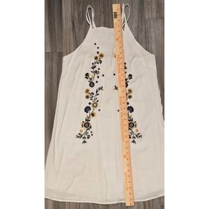 Step into summer with this stunning Blue Rain white halter dress, featuring delicate yellow floral embroidery that adds a touch of whimsy. Perfectly designed for warm days, this fully lined dress ties elegantly at the back of the neckline, ensuring a flattering fit. Whether you're headed to a wedding, a date night, or a tropical vacation, this dress is your go-to choice for effortless style and comfort. Available in size small, measurements are included in the listing for a perfect fit!