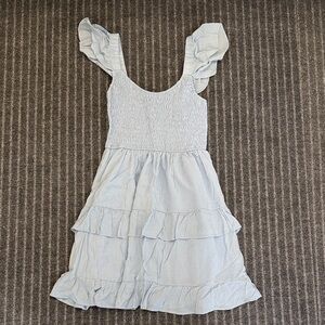 This delightful dress features a charming blue hue with playful ruffles, perfect for any occasion. Crafted with care, it offers both style and comfort for your little one.