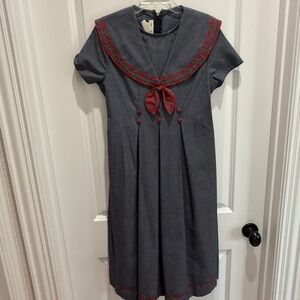 This casual dress by Bonnie Jean features a charming pleated design in a soft gray hue, accented with a sailor collar and a tie front. The short sleeves and crew neck add to its relaxed yet stylish appeal, making it perfect for everyday wear.