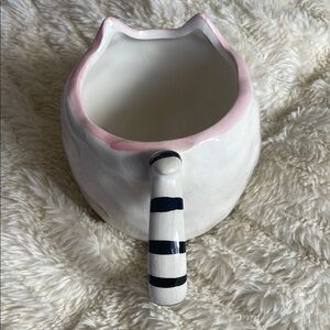 Enjoy your favorite beverage in this charming cat mug featuring delightful pink accents. Perfect for cat lovers. Crackle pattern throughout but it does have a hairline crack on the inside. See pics.